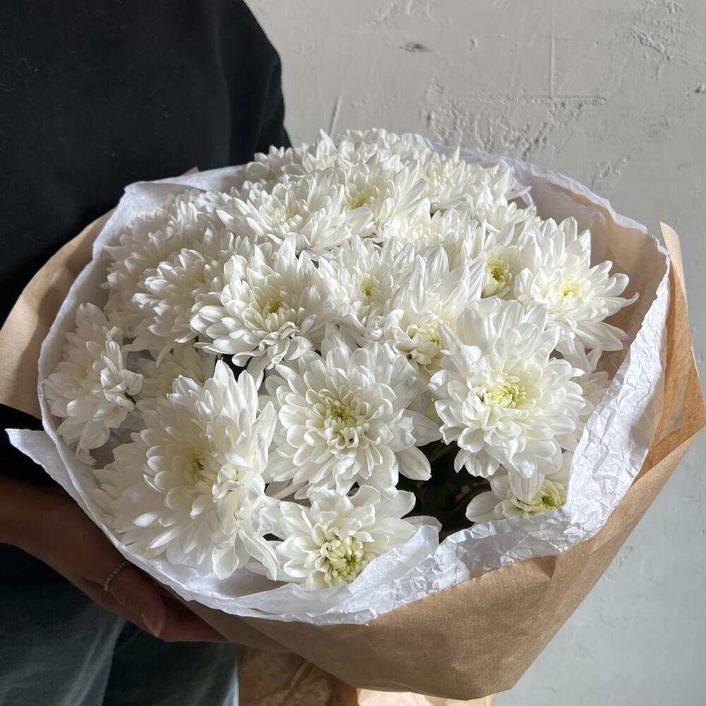 Нежная и воздушная кустовая хризантема! Словно махровые солнышки распускаются соцветия, с миллионом лепестков! Неприхотливая и невероятно стойкая! Достаточно ежедневно менять воду и обновлять срез под 45 градусов!Больше цветов доступно в нашем магазине