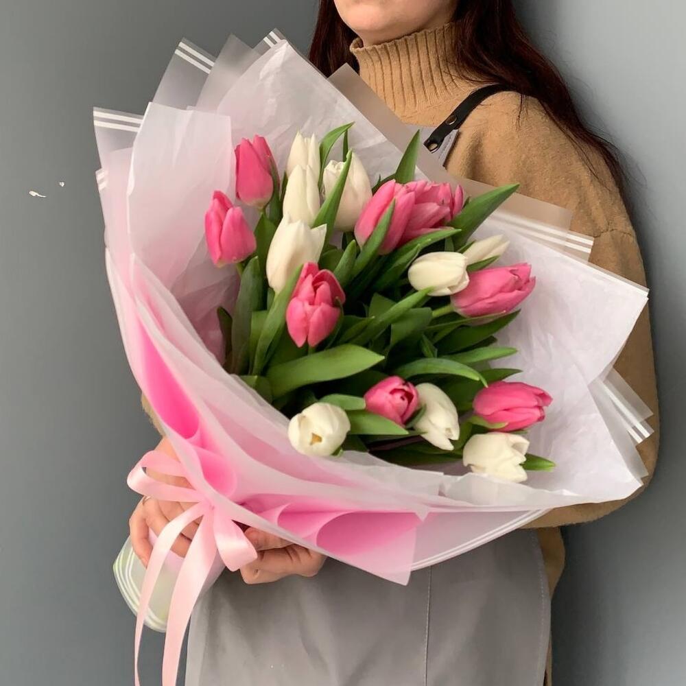Бело-розовые тюльпаны в Ардатове