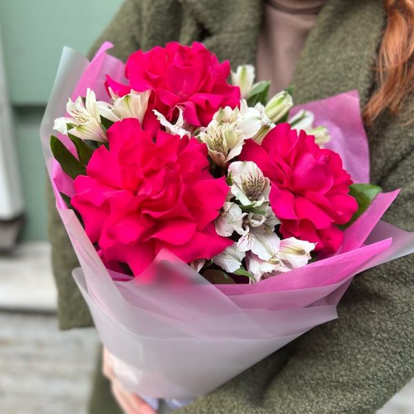 Букет из яркой французской вывернутой розы с белой альстромерией ( сб 113) в Ардатове
